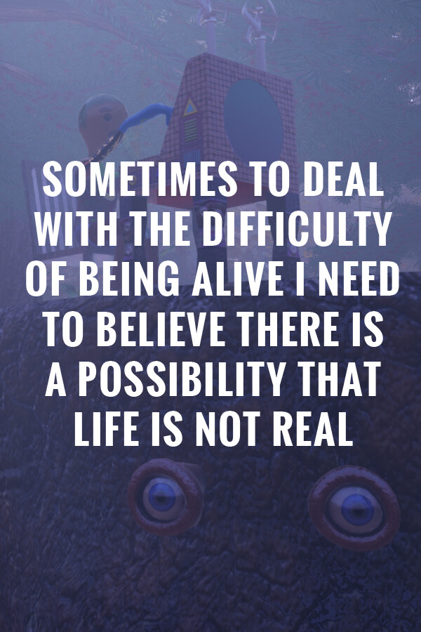 Sometimes to Deal With the Difficulty of Being Alive… to nietypowa, interaktywna gra indie, która łączy elementy gry wideo z instalacją artystyczną. Wciel się w obserwatora świata, który nieustannie się przekształca — zarówno tragiczny, jak i zabawny — i doświadczaj medytacyjnej refleksji nad tym, co oznacza „trwać”, gdy wszystko wokół się rozpada.